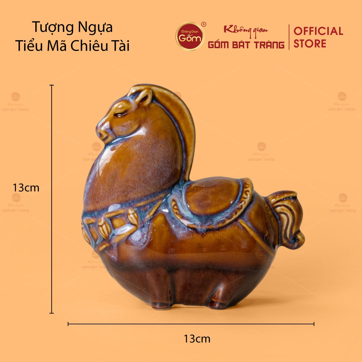 Tượng Ngựa Tiểu Mã Chiêu Tài được chế tác hoàn toàn thủ công tại làng nghề Bát Tràng, trải qua nhiều công đoạn tỉ mỉ từ tạo hình, chỉnh dáng, phủ men cho đến nung ở nhiệt độ cao. Nhờ đó, sản phẩm đạt độ bền chắc, nước men mịn màng và màu sắc tươi sáng, giữ được vẻ đẹp lâu dài theo thời gian.