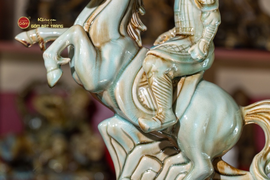 Sản phẩm được chế tác thủ công bởi nghệ nhân Bát Tràng, sử dụng chất liệu gốm sứ cao cấp, nung ở nhiệt độ cao để đảm bảo độ cứng – độ bền – độ bám men vượt trội. Gam men ngọc trầm ấm cùng hiệu ứng ánh men nhẹ tạo nên vẻ đẹp cổ kính, sang trọng và mang chiều sâu văn hóa.