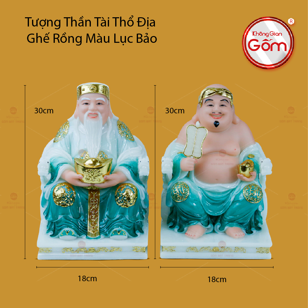 - Tên sản phẩm: Tượng Thần Tài Thổ Địa Ghế Rồng Màu Lục Bảo