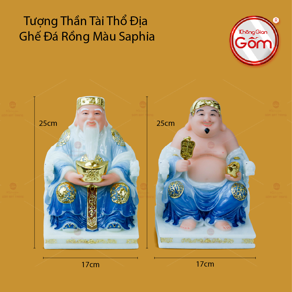 - Tên sản phẩm: Tượng Thần Tài Thổ Địa Ghế Rồng Màu Saphia