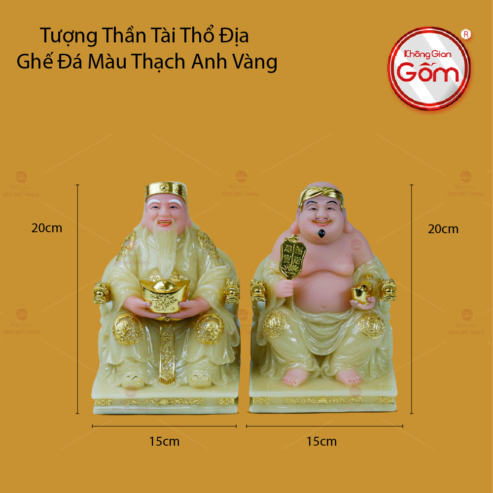 - Tên sản phẩm: Tượng Thần Tài Thổ Địa Ghế Rồng Màu Thạch Anh Vàng