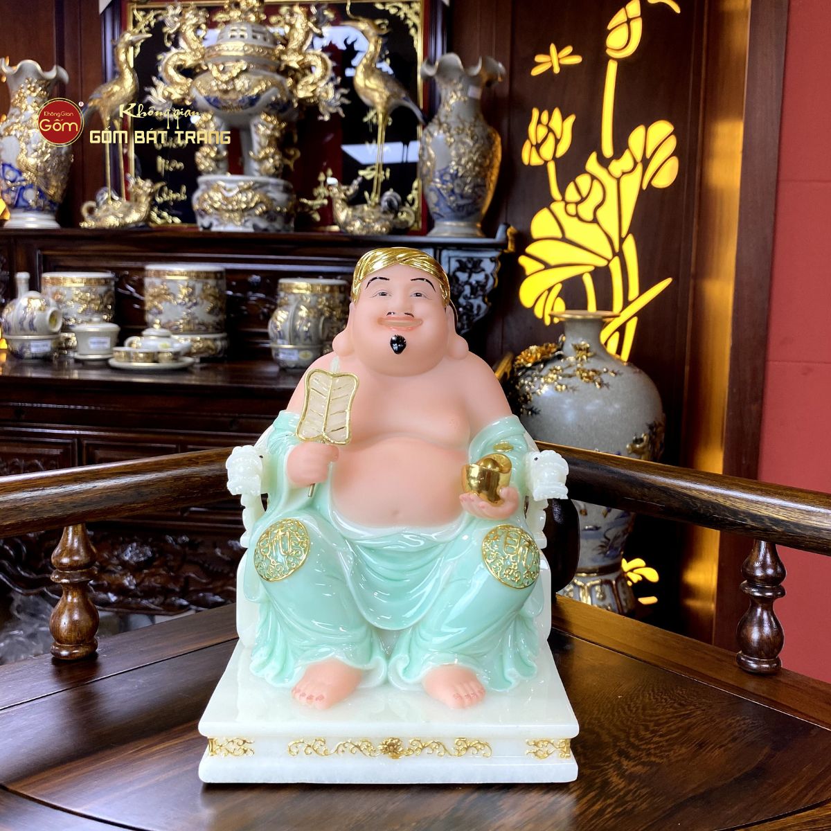 Vẻ đẹp Bộ Tượng Thần Tài Thổ Địa Ghế Rồng Màu Xanh Ngọc
